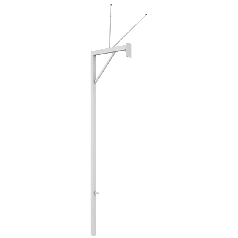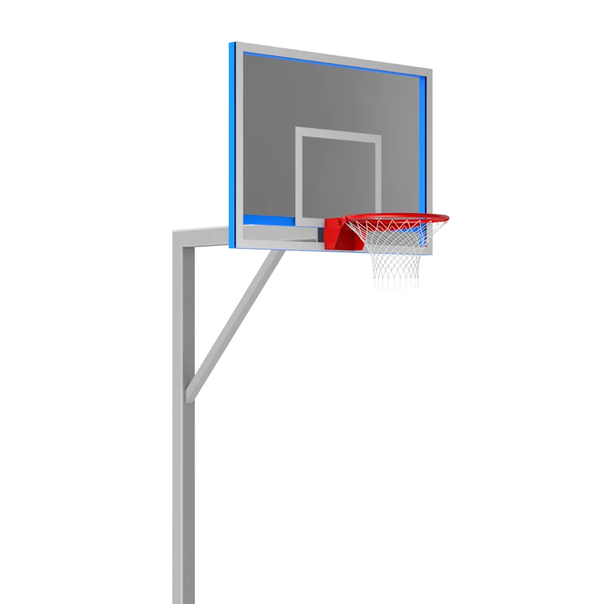 Дозволяє закріпити баскетбольні щити з оргскла або ламінованої вологостійкої фанери розміром 1800х1050 мм. Стійка закопується в землю на 800 мм і заливається бетоном, що дозволяє їй витримувати всі ігрові удари. При цьому висота до кільця становить 3050 мм. Стійка покрита полімерно-порошковим покриттям.