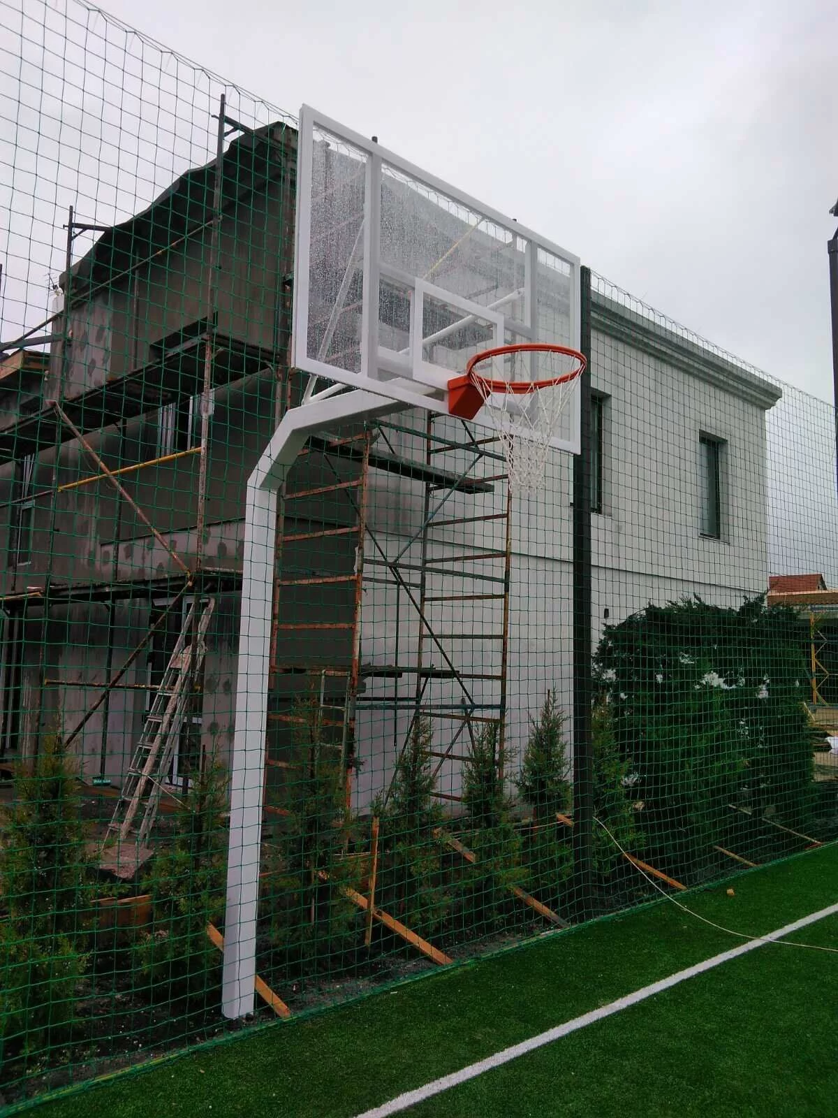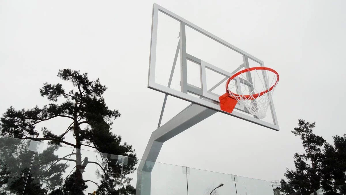 Баскетбольна стійка стаціонарна в комплекті зі щитом з оргскла товщиною 10 мм і кошиком.