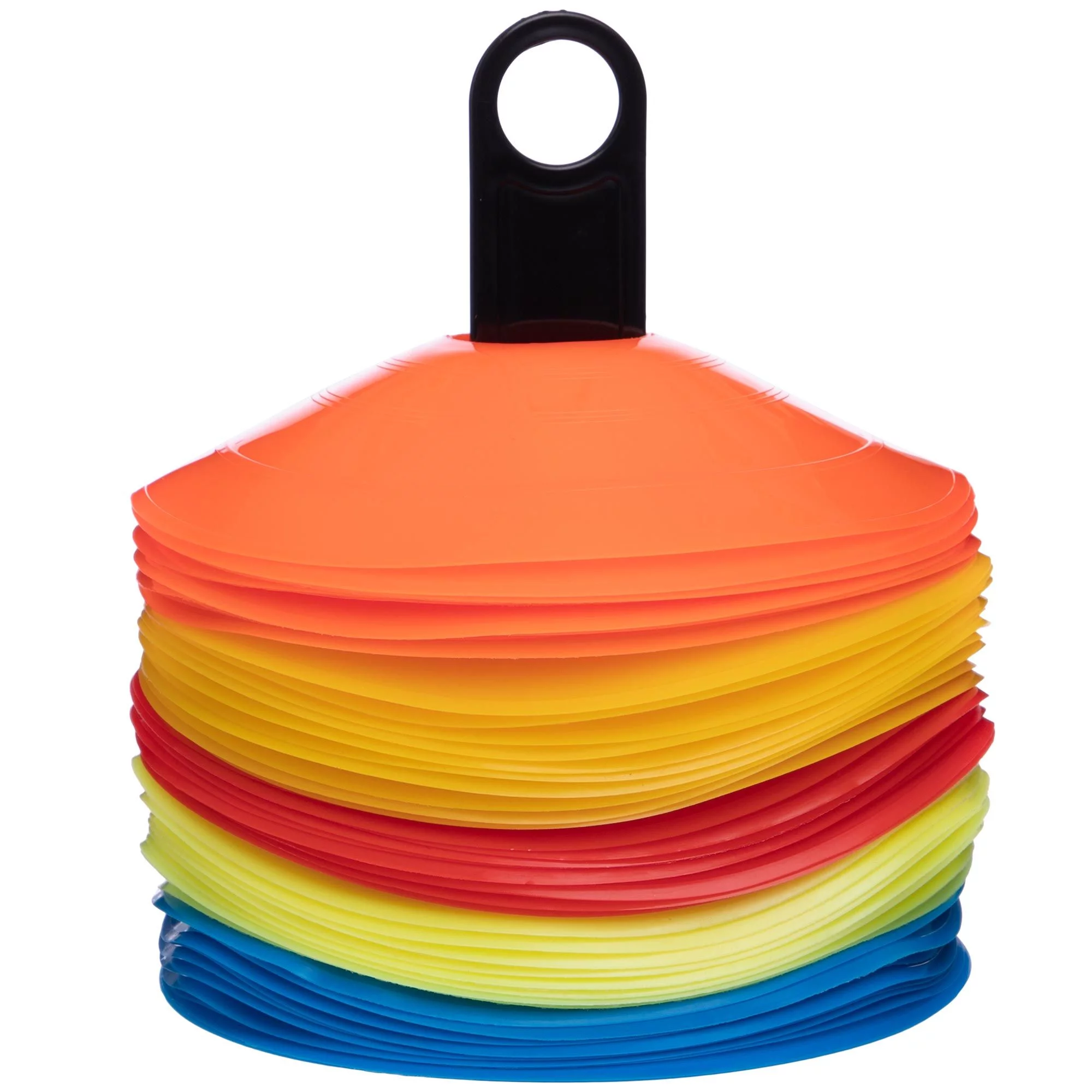 Фішки обмежувачі простору на підставці підходять майже для всіх видів тренувань. Легкі і зручні для зберігання, з отворами для стійок-перешкод, виготовлені з гнучкого пластику.