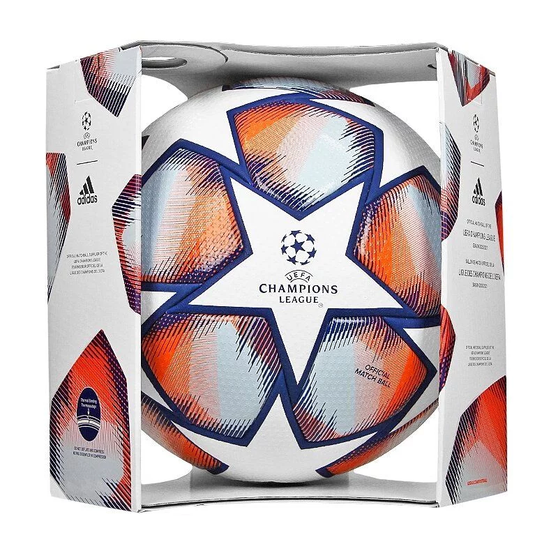 М'яч Ліги Чемпіонів сезону 2020 професійного рівня. Динамічний дизайн зірок обрамляє їх синім кольором, створюючи враження, ніби вони стріляють по поверхні, коли м'яч знаходиться в польоті. Навіть поліпшена текстура поверхні набуває форму крихітних зірочок. Цей футбольний м'яч - той, який ви побачите на полі в найбільшому клубному турнірі Європи.