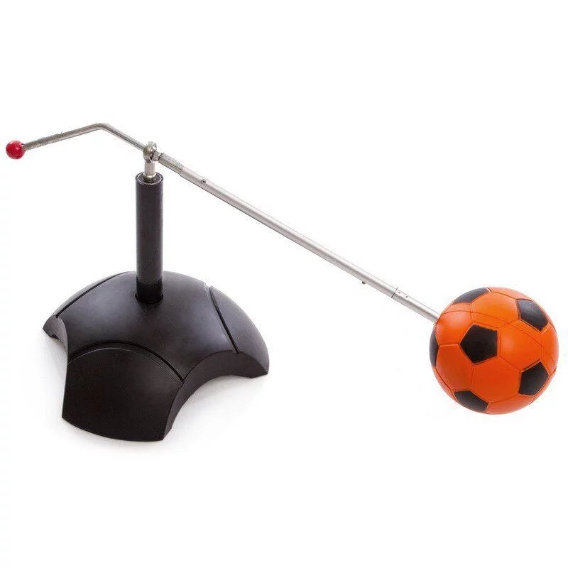 М'яч футбольний тренувальний тренажер - простий інвентар, який навчить спортсмена володіти м'ячем, допоможе відпрацювати удари, робити фінти та інше. Покришка м'яча поліуретанова, камера - латекс, що забезпечує м'який відскік. Від'єднавши м'яч від карабіна, можна відпрацьовувати удари по воротах або грати.