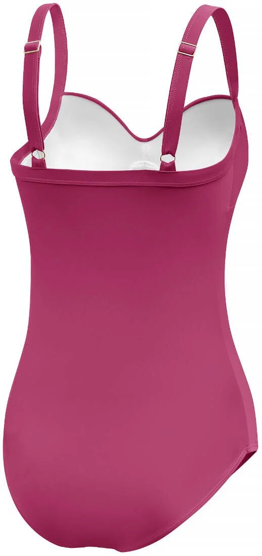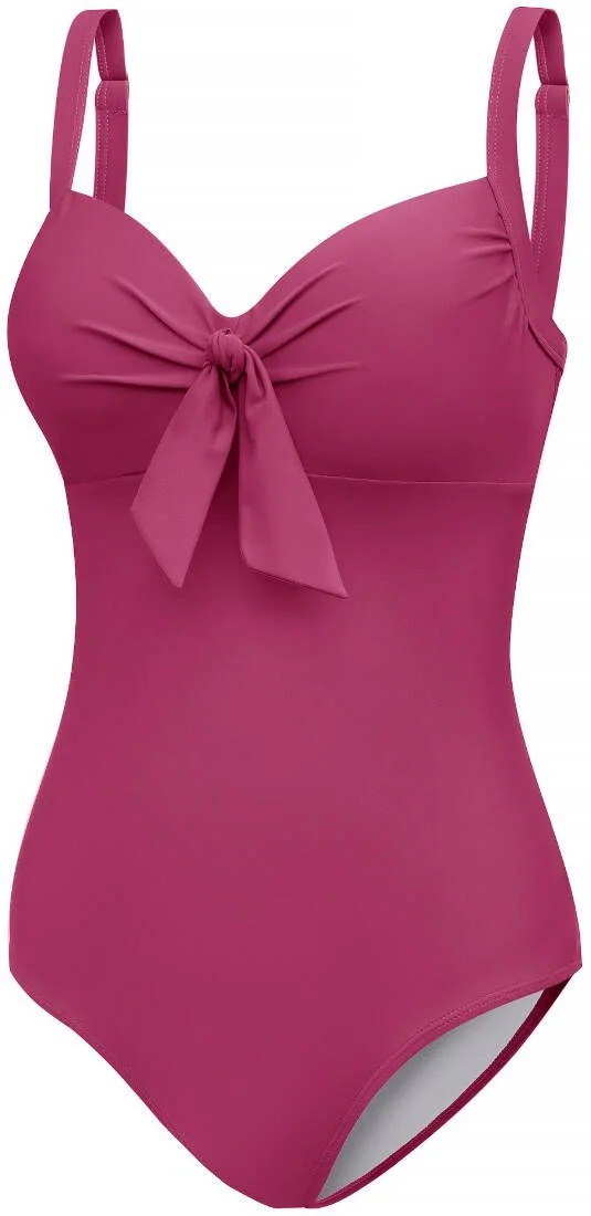 Витончений суцільний купальник, створений для комфорту та підтримки повних фігур, поєднуючи стиль і функціональність. Оснащений вбудованими чашками на кісточках з дротом для максимальної підтримки грудей, регульованими лямками. Деталі на бюсті та бант підкреслюють її вишуканість. Виготовлений зі стійкої до хлору тканини VITA, що складається з 78% переробленого поліаміду та 28% еластану, цей купальник гарантує довговічність і класичний вигляд. Повна спина та середній виріз забезпечують комфорт і покриття, що робить цей одяг придатним для різноманітних водних розваг, таких як плавання, водна аеробіка та розслаблюючі дні на пляжі. Найважливіші особливості купальника: Трикотаж VITA (78% перероблений поліамід, 28% еластан) Висока стійкість до хлору Вбудований бюстгальтер з жорсткими чашками і кісточками Регульовані бретелі Елегантна драпірування матеріалу на грудях Повна спина Підкладка спереду і ззаду костюма