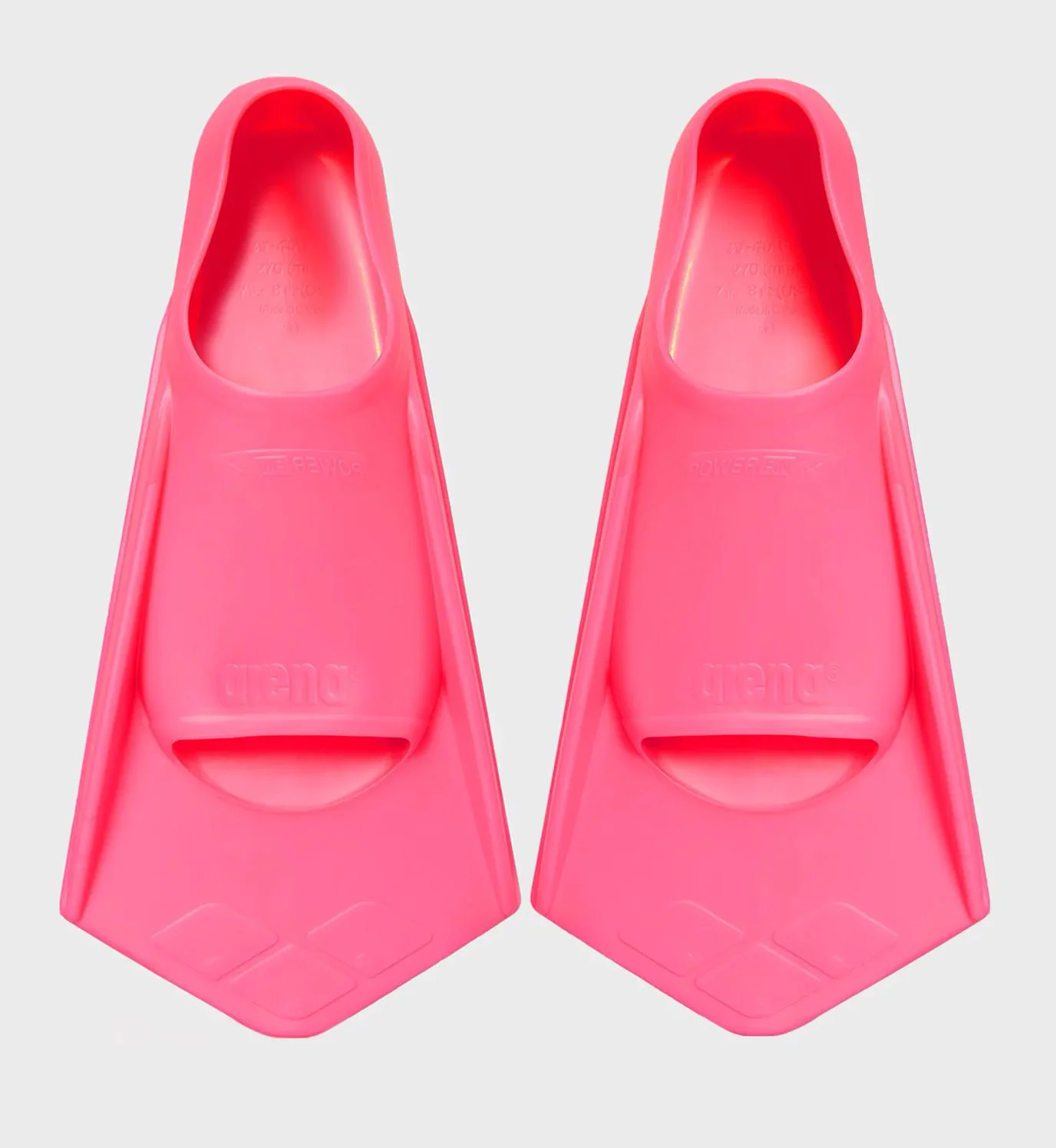 Короткі ласти з закритою п'яткою. Ласти Arena - цільна силіконова конструкція. В області лопастей силікон найбальш жорсткий - це дозволяє створювати достатній опір воді. Сапог більш м'який та гнучкий, що дозволяє міцно тримати ногу під час плавання. Завдяки еластичному матеріалу, рух стопи у воді є природнім.