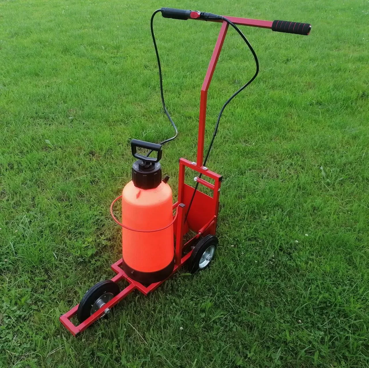 Візок для фарбування ліній на спортивних майданчиках з використанням емульсійної фарби.