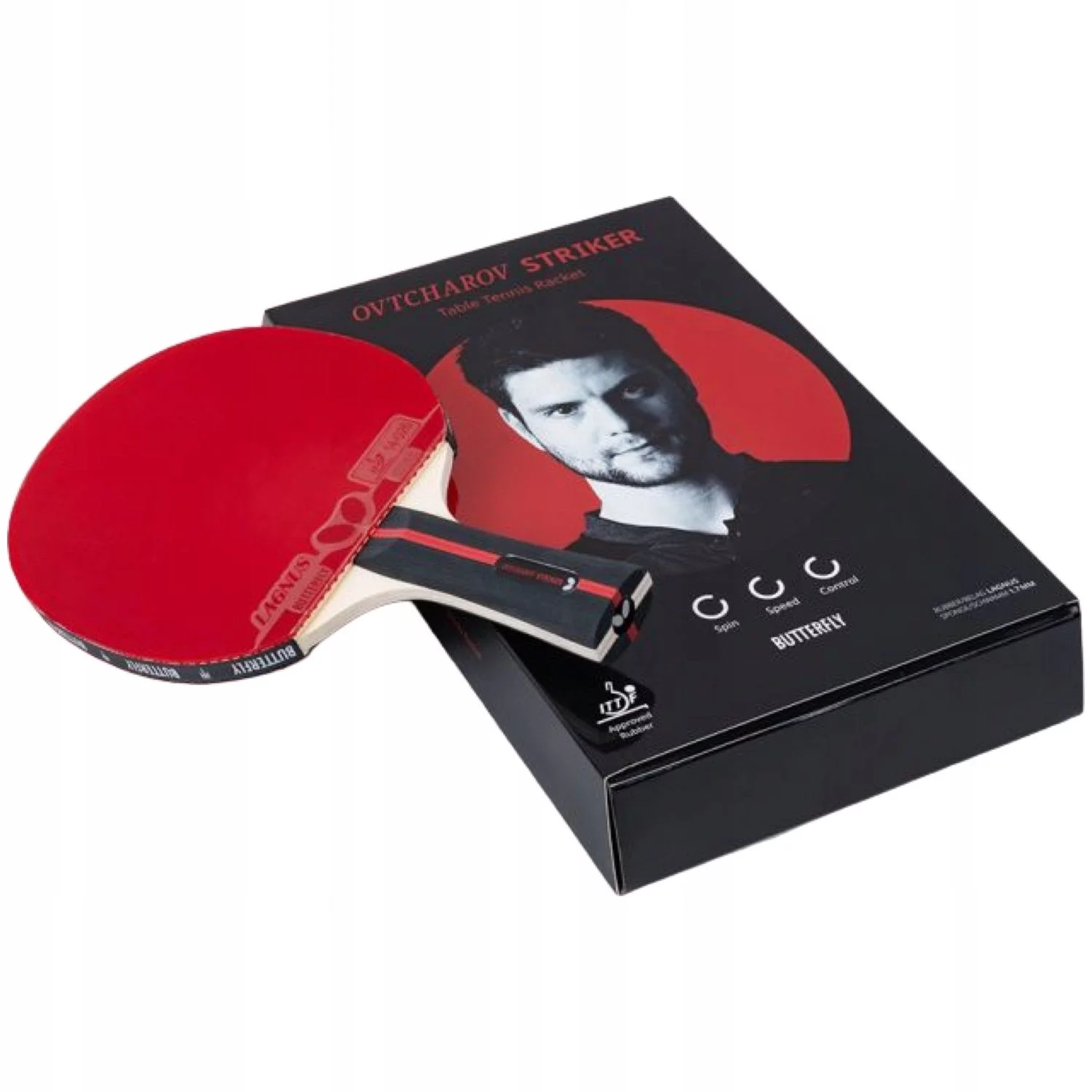Butterfly Ovtcharov Striker – атакуюча ракетка, розроблена для амбітних спортсменів із гарним досвідом. Накладка Butterfly Lagnus (товщина губки 1.7мм), мають сертифікат ITTF, забезпечують швидкі та точні удари. Також варто відзначити високе зчеплення накладок, завдяки чому вони відмінно підійдуть для топ-спинів. Все це робить Butterfly Ovtcharov Striker ідеальним вибором для досвідчених гравців, котрі люблять атакуючу гру.