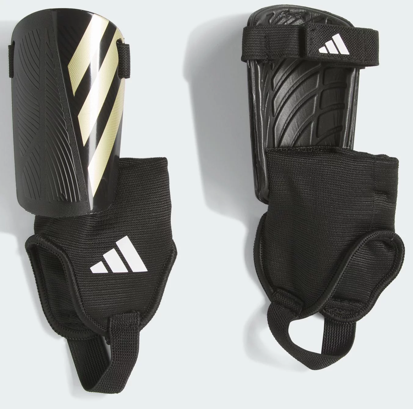 Футбольні щитки Tiro Match Kids Викладайся на повну, не турбуючись про суперників. Створені для молодих гравців, ці щитки Tiro Match для юніорів від adidas посилюють захист завдяки жорстким накладкам з ЕВА та м'яким вставкам на щиколотках. Застібка-липучка надійно їх фіксує, щоб можна було повністю зосередитися на перемозі. Вони виконані з переробленої сировини щонайменше на 20%, що дає змогу уникнути великого впливу на довкілля від виробництва первинної сировини. Внутрішній шар із ЕВА Жорстка передня панель Основний матеріал: 80% поліпропілен, 20% перероблений поліпропілен Регульована передня застібка-липучка Підтримка щиколотки Колір моделі: Black / Gold Metallic / White