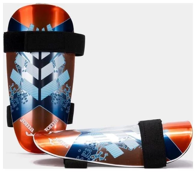 Наколінники, призначені для захисту гомілкової області від зовнішніх впливів під час футбольних матчів. Жорстка рама виготовлена з поліпропілену, матеріалу з високою ударостійкістю та легкої ваги. Внутрішня частина покрита 100% 8-мм EVA FOAM, високоякісним матеріалом, який пом'якшує удари. Ергономічна форма адаптується до нижньої частини ноги, оптимізуючи захист, забезпечуючи комфортну гру, не перешкоджаючи свободі рухів. Щитки на гомілки регулюються еластичним ремінцем із клейкою застібкою. Дизайн із металевим принтом і персоналізований дизайн.