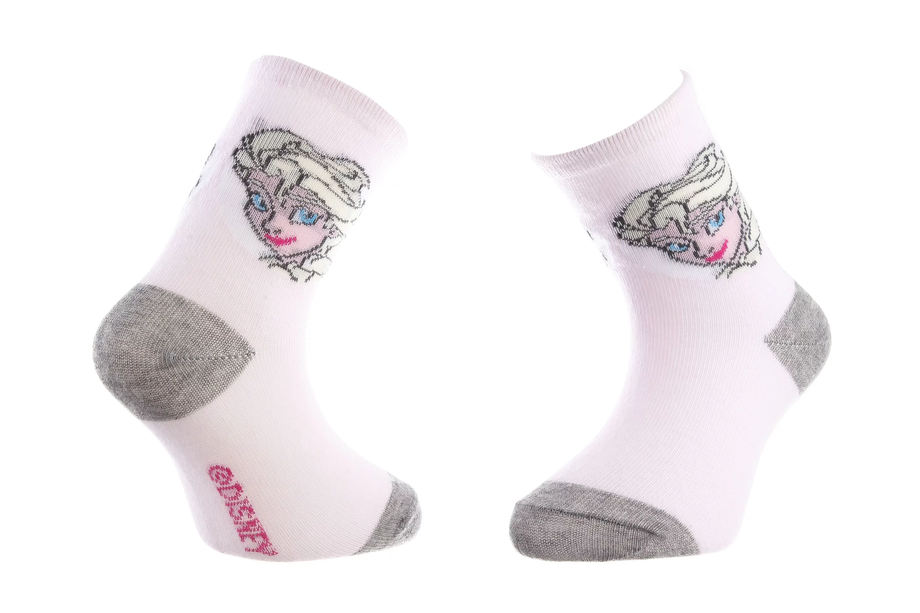 Мультяшні шкарпетки з принтом FROZEN гарантують, що ваш зовнішній вигляд стане чимось особливим і оригінальним. Веселий аксесуар доступний у дитячих розмірах. Добре пропускають повітря. Ідеальні для повсякденного носіння. Прекрасно виконують гігієнічну функцію, захищаючи шкіру ніг від натирань взуттям, ідеально облягають ніжку та дарують комфортне відчуття. У пачці 1 пара шкарпеток.