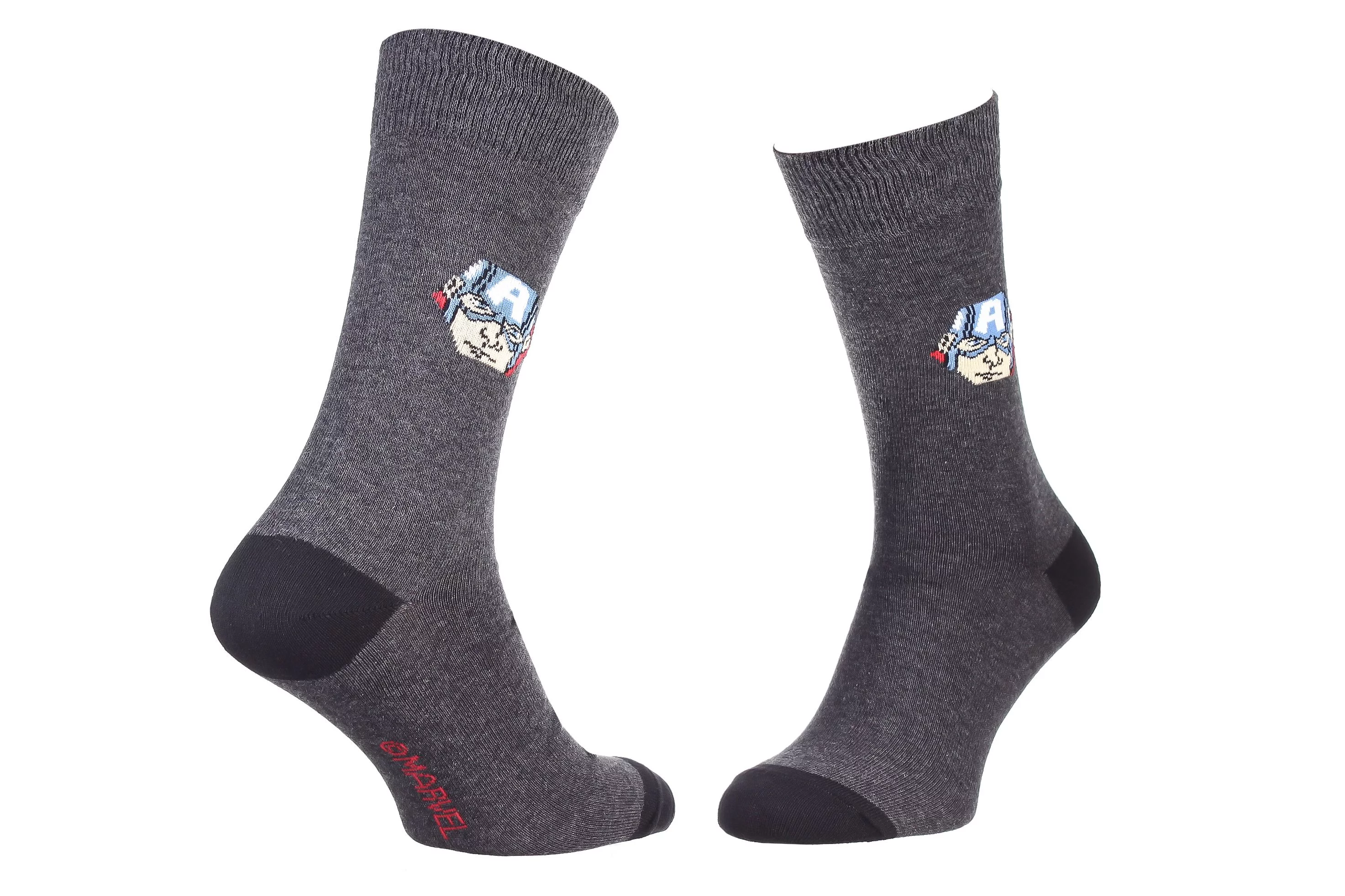 Мультяшні шкарпетки з принтом MARVEL гарантують, що ваш зовнішній вигляд стане чимось особливим і оригінальним. Веселий аксесуар доступний у чоловічих розмірах. Добре пропускають повітря. Ідеальні для повсякденного носіння. Прекрасно виконують гігієнічну функцію, захищаючи шкіру ніг від натирань взуттям, ідеально облягають ніжку та дарують комфортне відчуття. У пачці 1 пара шкарпеток.