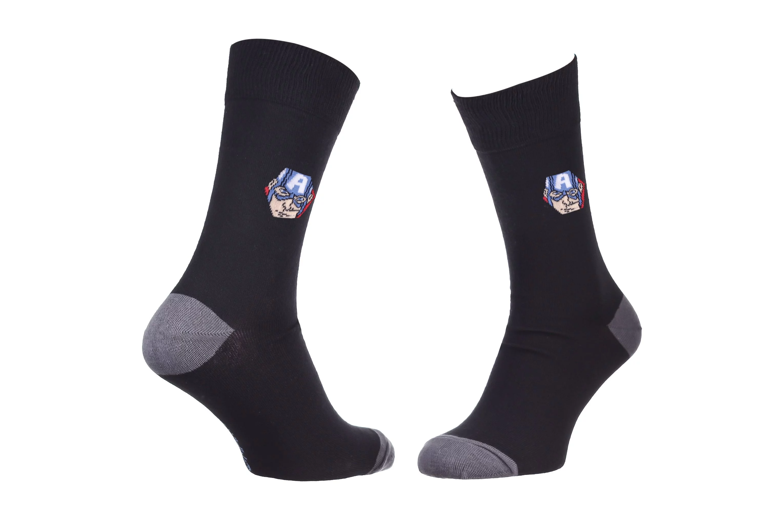 Мультяшні шкарпетки з принтом MARVEL гарантують, що ваш зовнішній вигляд стане чимось особливим і оригінальним. Веселий аксесуар доступний у чоловічих розмірах. Добре пропускають повітря. Ідеальні для повсякденного носіння. Прекрасно виконують гігієнічну функцію, захищаючи шкіру ніг від натирань взуттям, ідеально облягають ніжку та дарують комфортне відчуття. У пачці 1 пара шкарпеток.