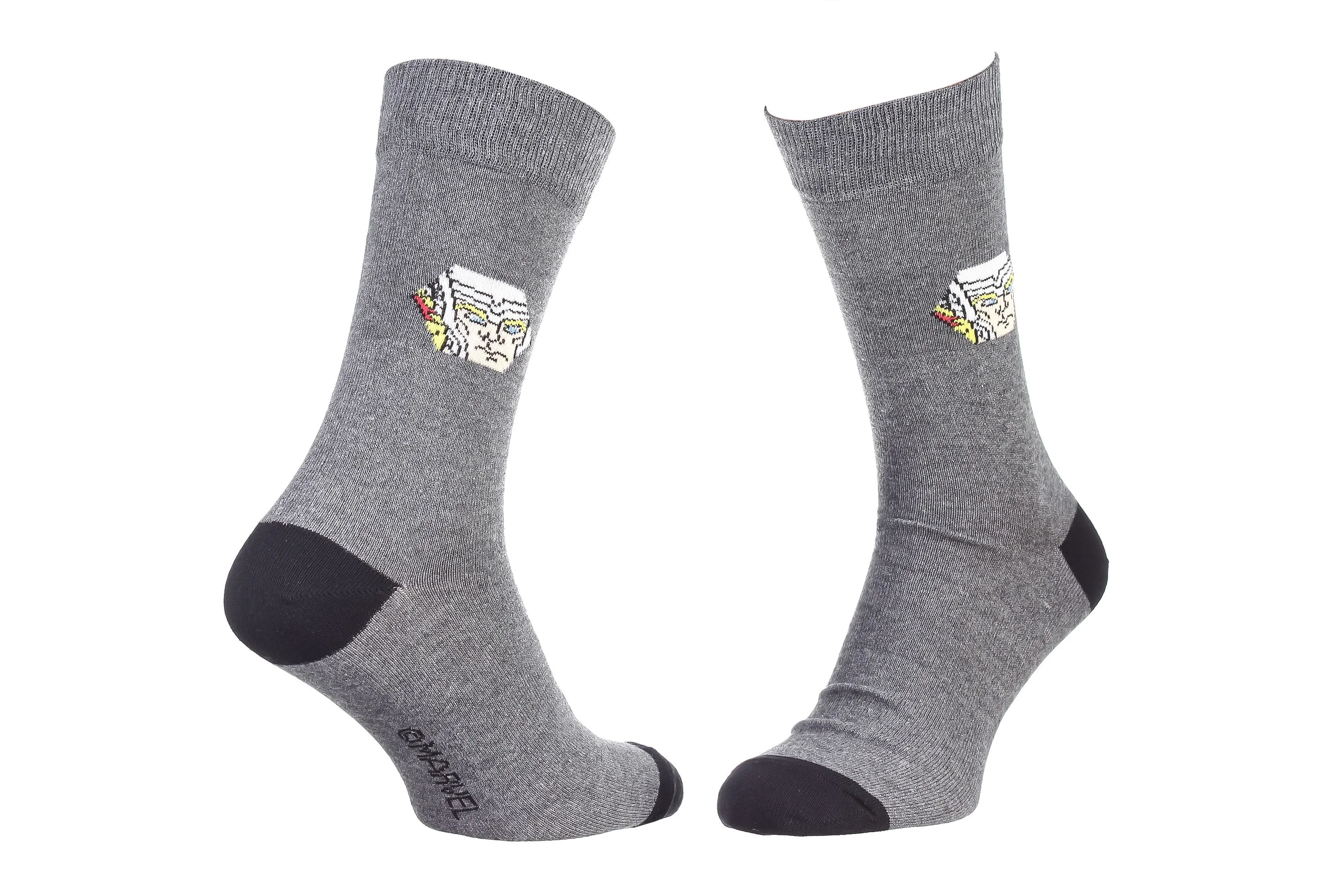 Мультяшні шкарпетки з принтом MARVEL гарантують, що ваш зовнішній вигляд стане чимось особливим і оригінальним. Веселий аксесуар доступний у чоловічих розмірах. Добре пропускають повітря. Ідеальні для повсякденного носіння. Прекрасно виконують гігієнічну функцію, захищаючи шкіру ніг від натирань взуттям, ідеально облягають ніжку та дарують комфортне відчуття. У пачці 1 пара шкарпеток.