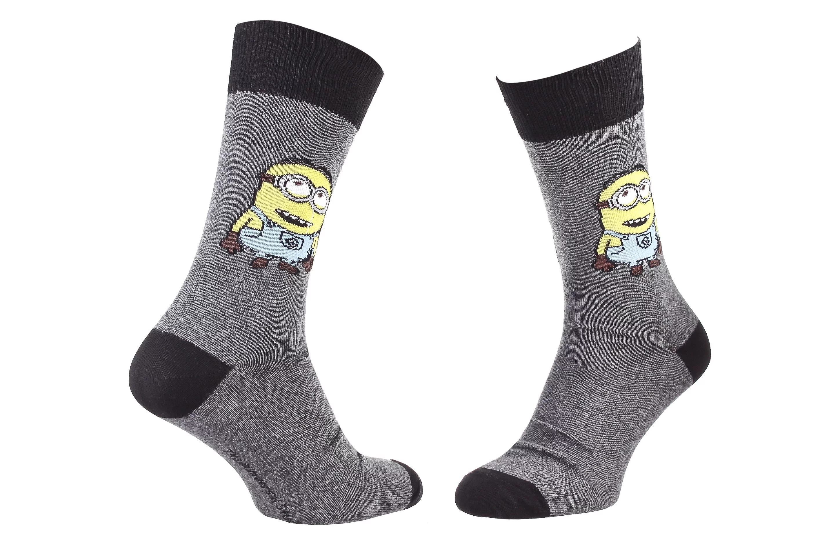 Мультяшні шкарпетки з принтом MINIONS гарантують, що ваш зовнішній вигляд стане чимось особливим і оригінальним. Веселий аксесуар доступний у чоловічих розмірах. Добре пропускають повітря. Ідеальні для повсякденного носіння. Прекрасно виконують гігієнічну функцію, захищаючи шкіру ніг від натирань взуттям, ідеально облягають ніжку та дарують комфортне відчуття. У пачці 1 пара шкарпеток.