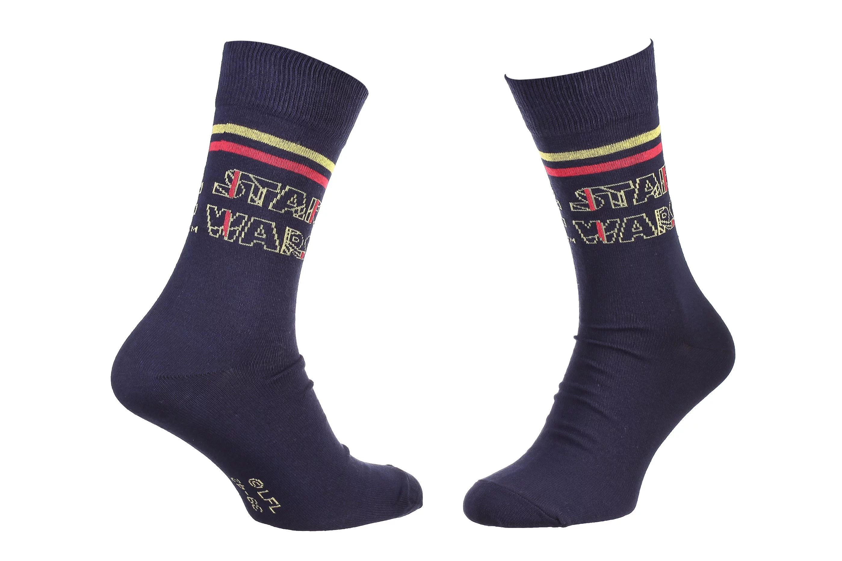 Мультяшні шкарпетки з принтом STAR WARS гарантують, що ваш зовнішній вигляд стане чимось особливим і оригінальним. Веселий аксесуар доступний у чоловічих розмірах. Добре пропускають повітря. Ідеальні для повсякденного носіння. Прекрасно виконують гігієнічну функцію, захищаючи шкіру ніг від натирань взуттям, ідеально облягають ніжку та дарують комфортне відчуття. У пачці 1 пара шкарпеток.