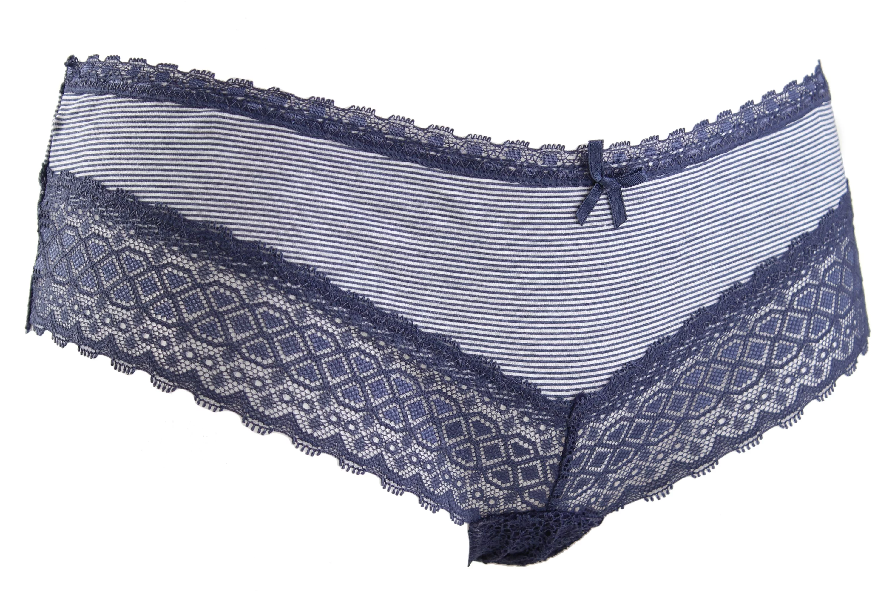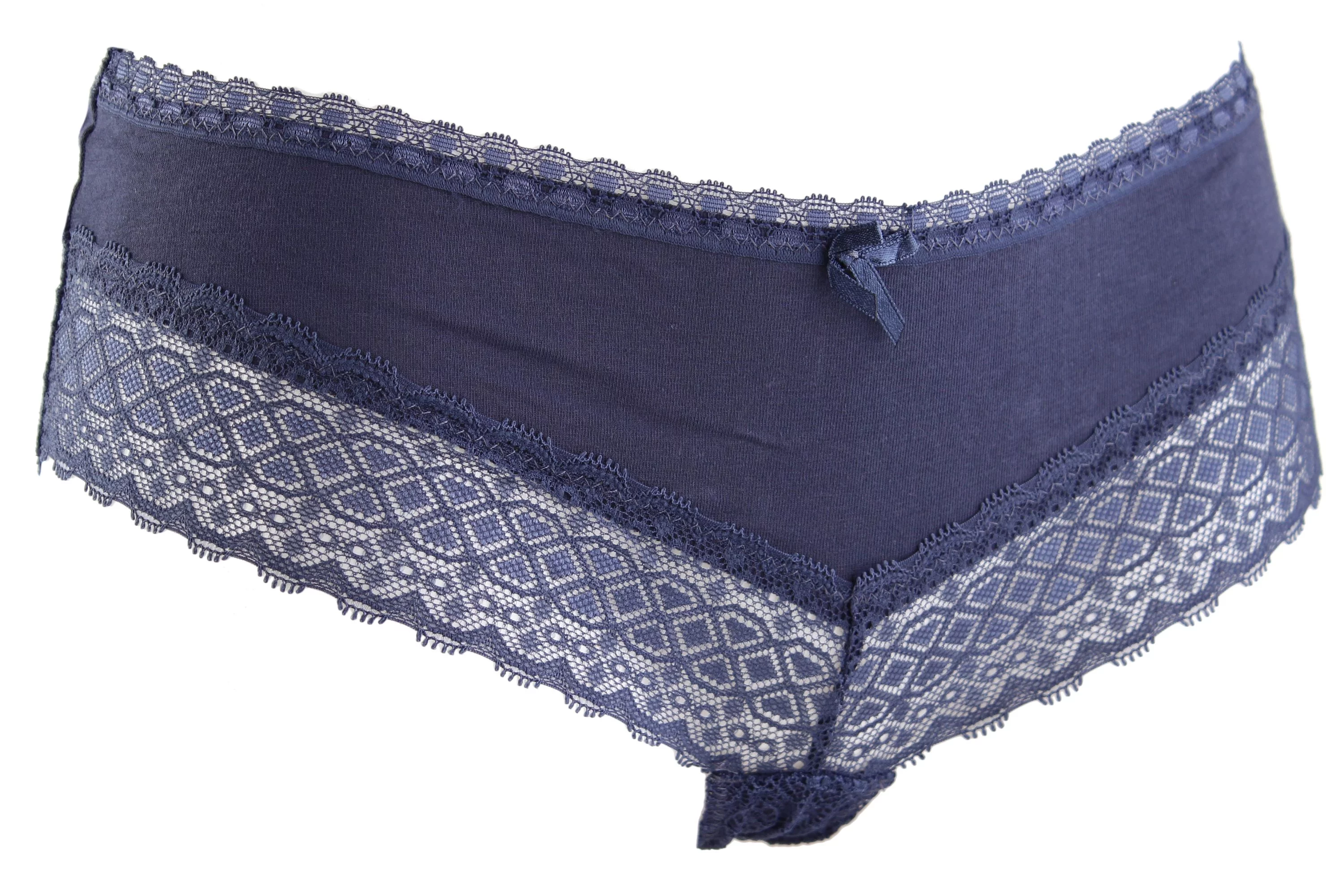 Сучасні жіночі труси високої якості. Вони чудово сидять, приємні до тіла. Повітропроникна та еластична тканина забезпечує свободу рухів. Красиві трусики з бавовни з мереживними вставками та з невеликим бантиком. Середня лінія талії. Кількість в упаковці - 2 шт.