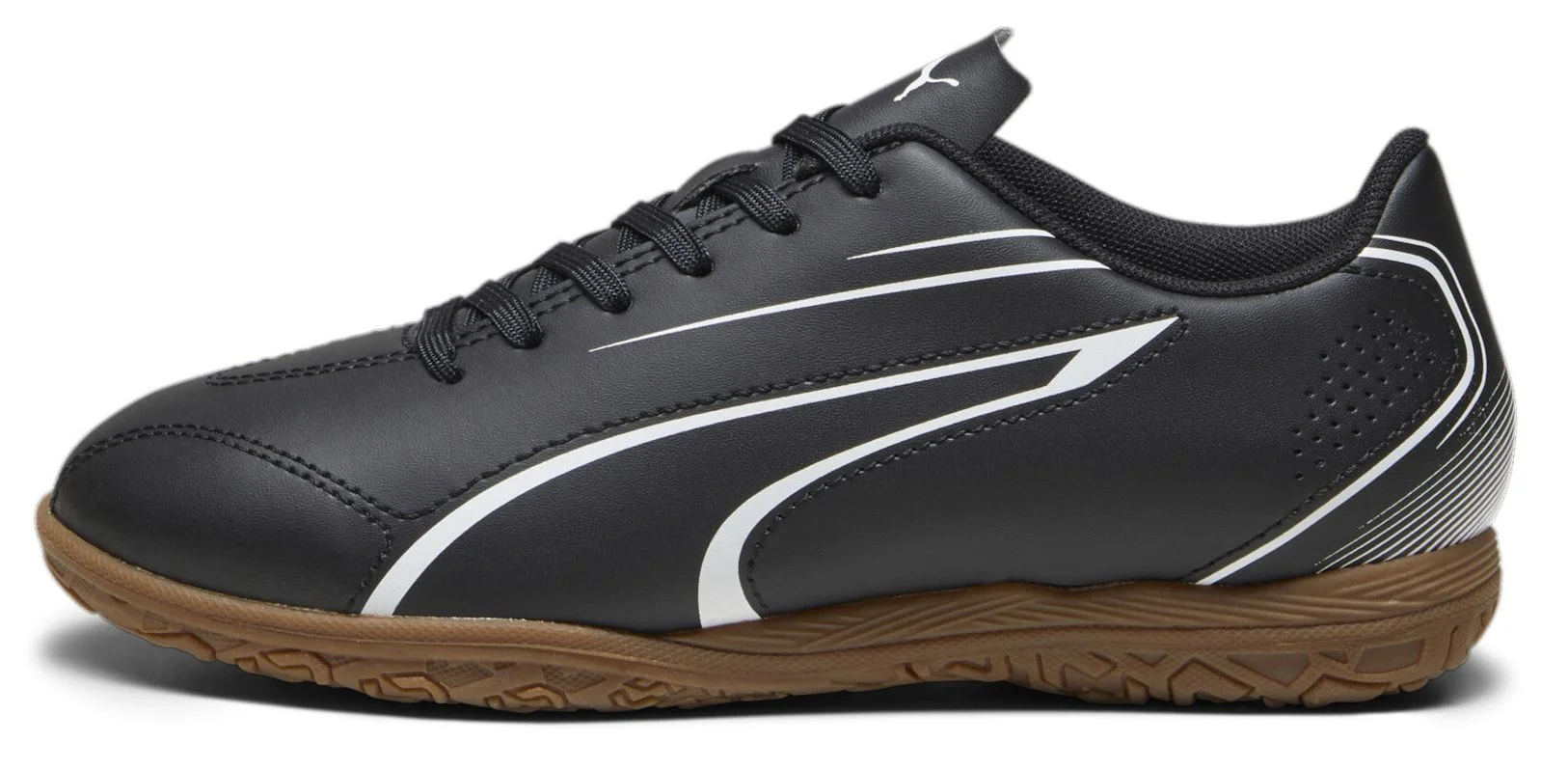 Дитяче футбольне взуття Puma Vitoria IT Jr. Сучасний дизайн, легке у догляді футбольне взуття: VITORIA. М’який, міцний синтетичний матеріал забезпечує комфорт, а декоративна вишивка та деталі з принтами доповнюють стиль. Синтетичний верх. Класичний язичок для взуття різного типу стопи. Стійка до стирання гумова підошва. Звичайна посадка. Підходить для підлог у всередині приміщень.
