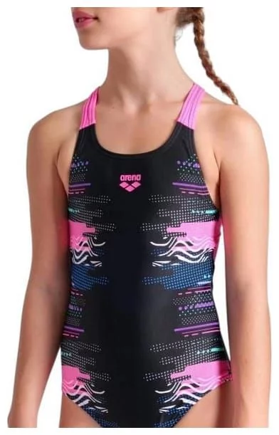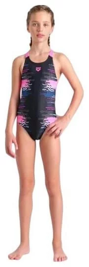 Купальник для дівчат Arena RHYTHM SWIMSUIT V BACK L чорний, рожевий Діт 140 см