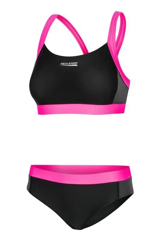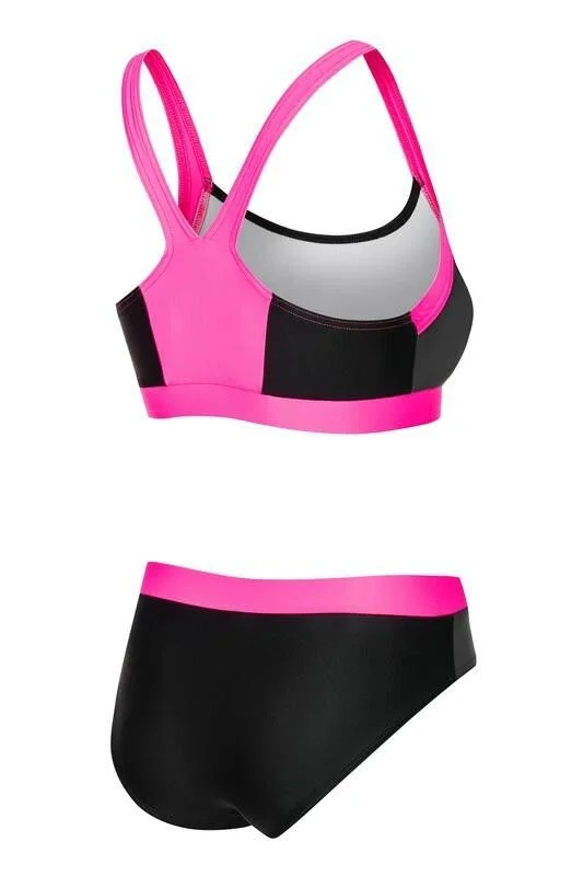 Купальник Naomi з двох частин - ідеальне рішення для активних користувачів, для яких стиль важливий. Виготовлений з італійської, швидковисихаючої, дихаючої тканини Vita (характеристики дивіться нижче), цей костюм підходить не тільки для басейну або пляжу, а й підійде під час різних видів спорту (фітнес, аеробіка, пляжний волейбол). Добре сидять трусики з широкою еластичною талією гарантують зручність і комфорт використання. Широкі гумові стабілізатори під бюстом і Х-подібні лямки додатково підтр