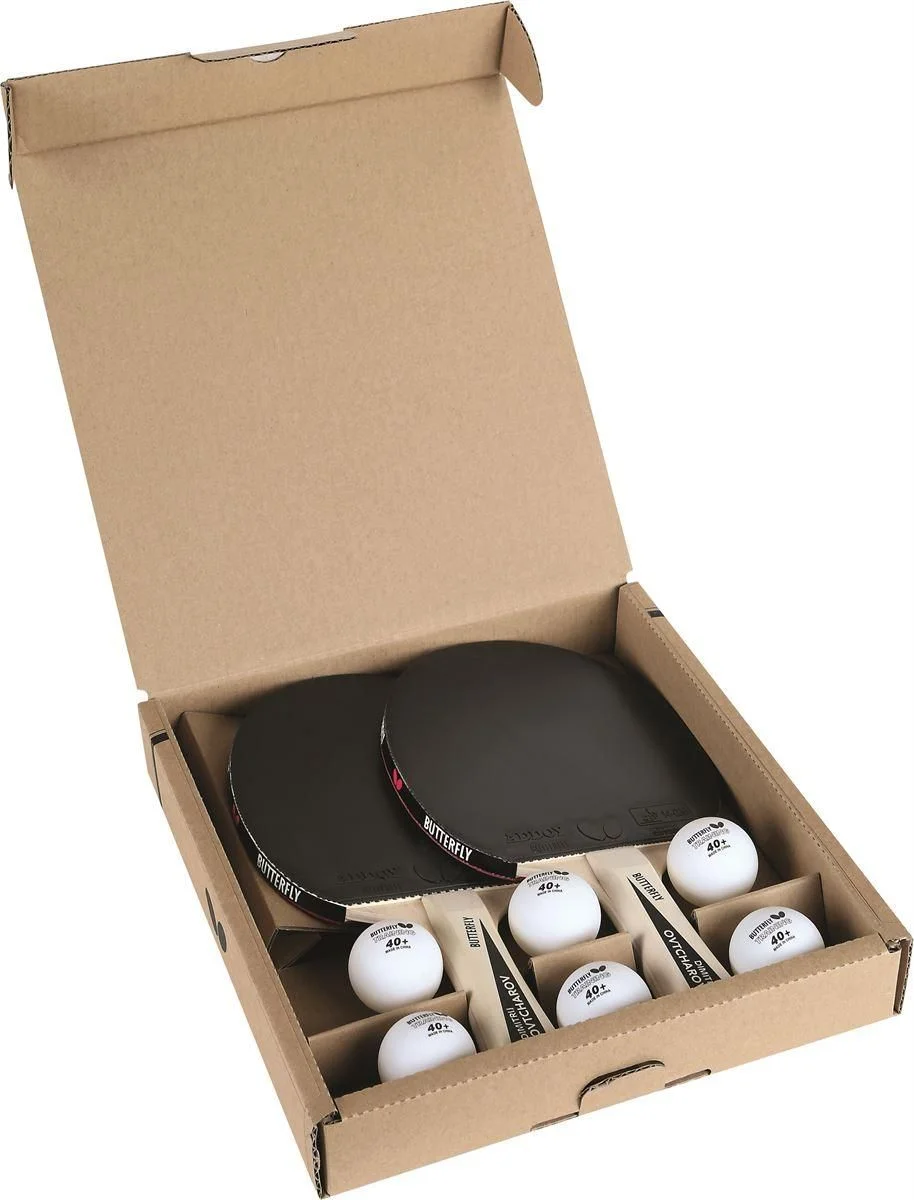 У набір входить дві ракетки Butterfly Ovtcharov та 6 м'ячів Butterfly Training Ball.