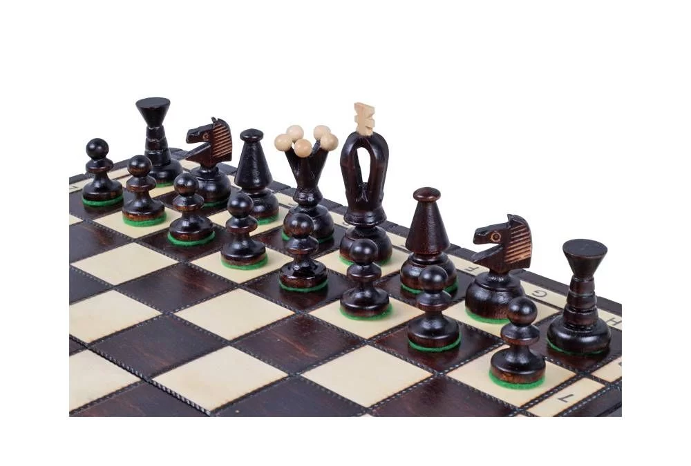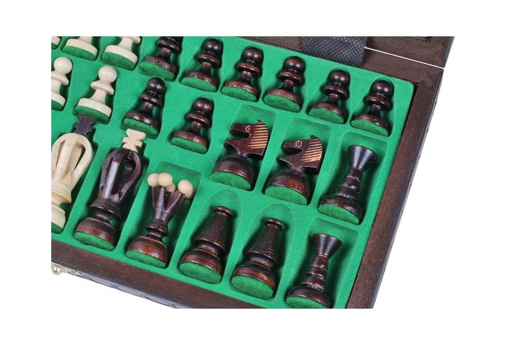 Це шаховий набір із середнім королем і один із найпопулярніших аматорських наборів. Всередині є вкладиш для фігурок. Деталі були виготовлені з яворового дерева.